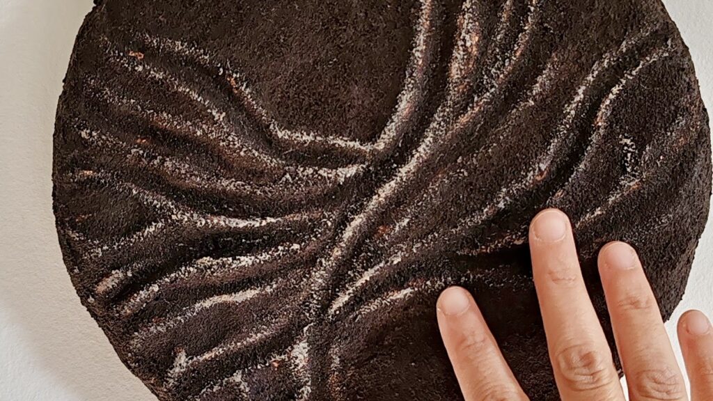 As an Ecuadorian visual artist living in Northern Italy, I found my artistic voice in the rich coffee culture surrounding me. Six years ago, during an interior design course in Milan, a project on a coffee brand sparked an unexpected fascination. Discovering the potential of coffee’s “discarded part” – its grounds – I was captivated by the idea of transforming this humble waste into art. This curiosity ignited a passionate journey of experimentation, leading me to create sculptural and ephemeral works that explore texture, light, and impermanence through the unique medium of coffee.